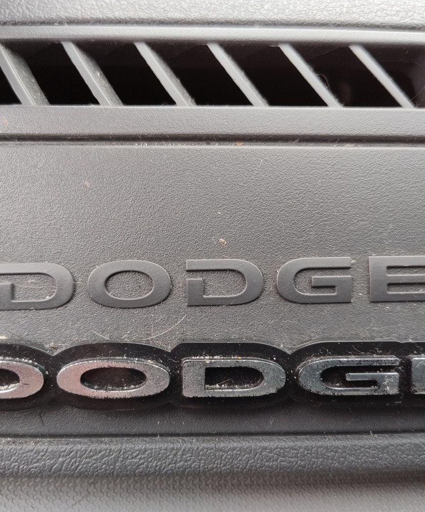 See how the original Dodge has a slightly different font, but also sits slightly higher to the right, than the larger badge?