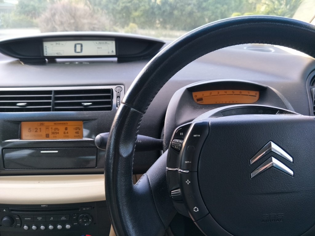 This C4 was a manual VTR spec with a bigger 2-litre engine. It had cruise control, climate control, power driver’s seat (with memory), a large central LCD speedo and a suite of safety measures. The design feature I admired most was the fixed centre hub of the steering wheel.