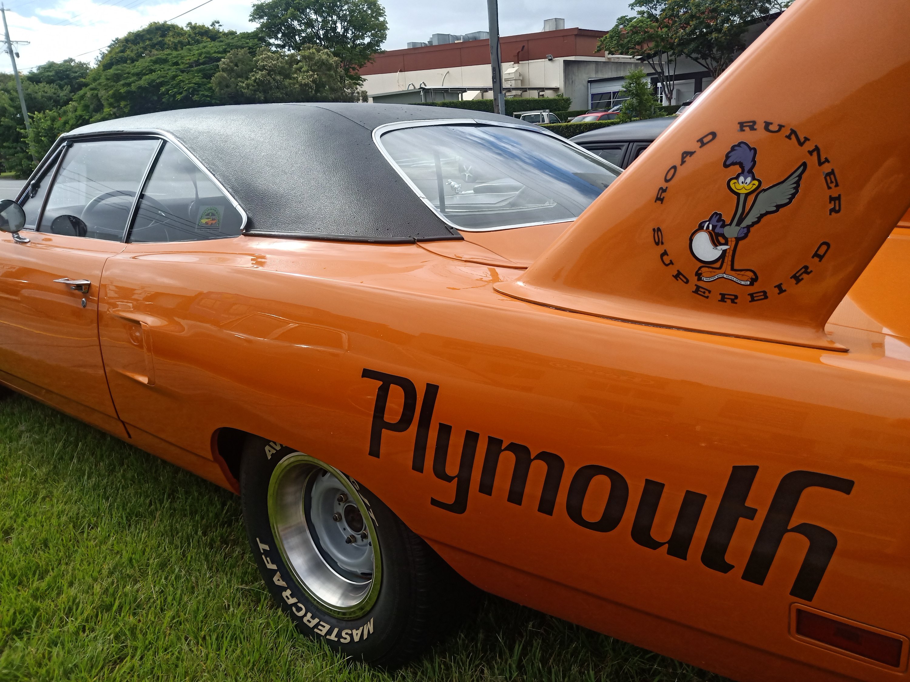 Plymouth licensed the design from Warner Bros, after an official visited with a list of the “rules” for Road Runner. The character appeared in the engine bay, and on the massive rear spoiler of the “Superbird” model.